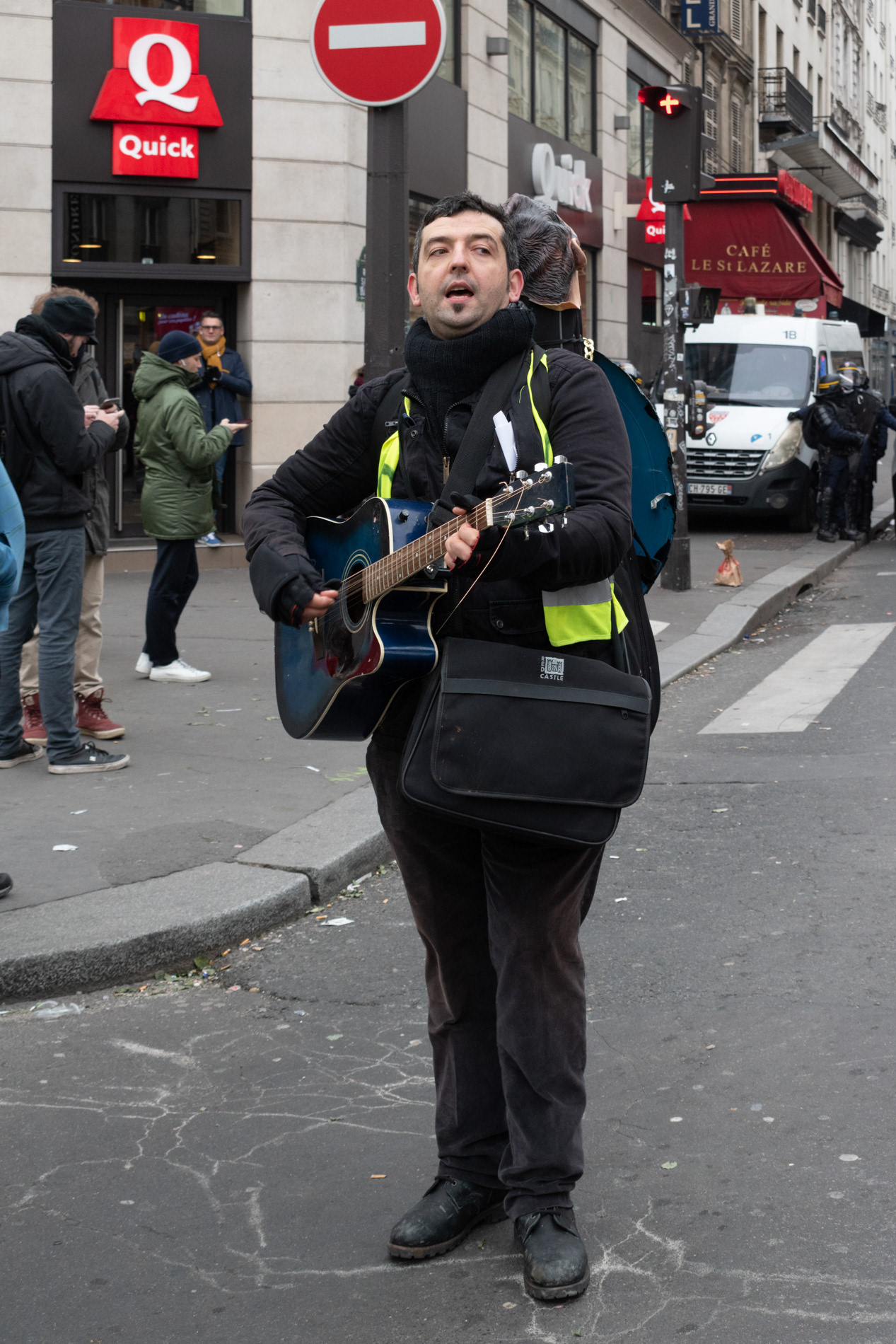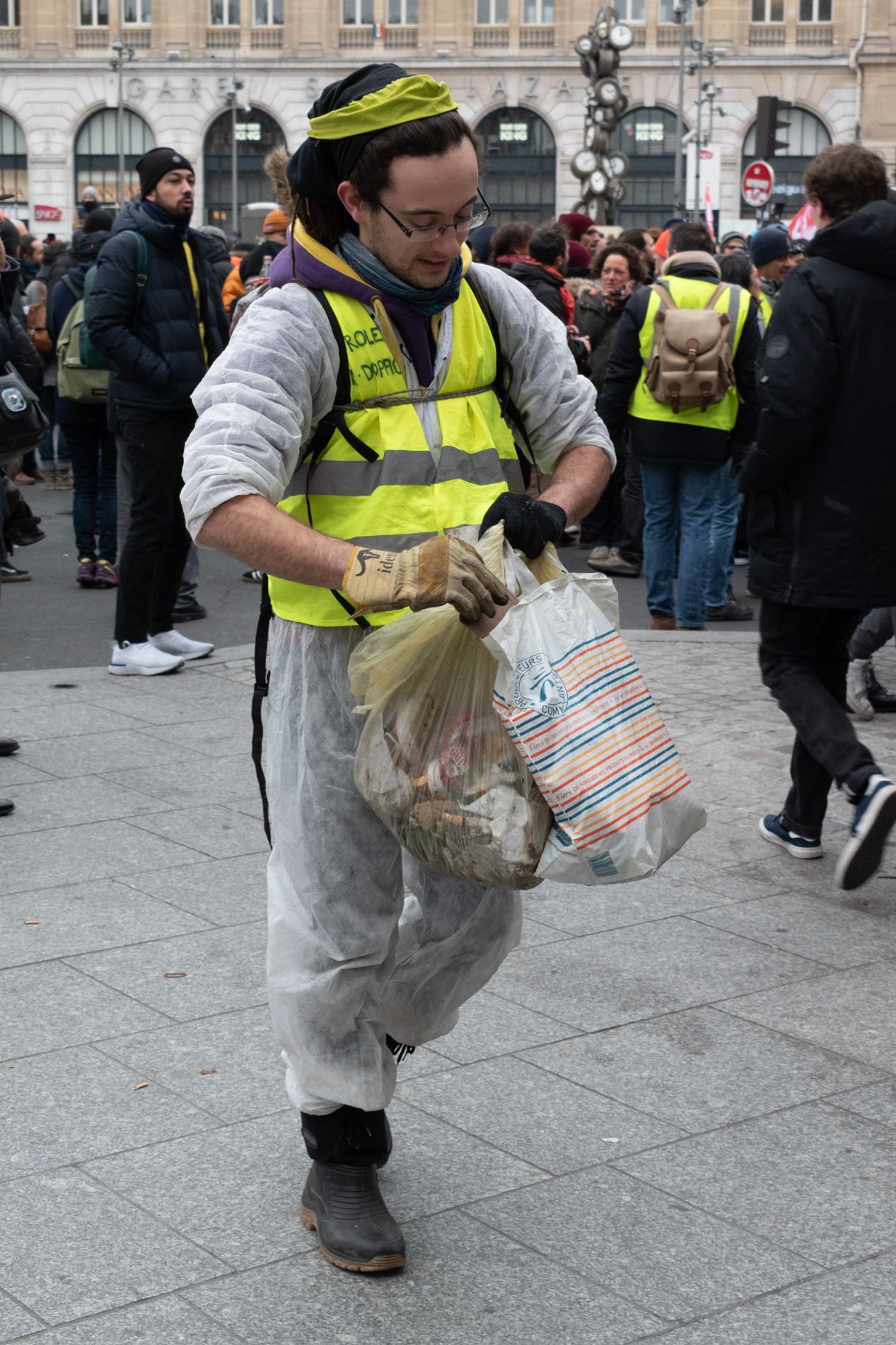 "Sous les pavés, la plage" Un autre regard sur les Gilets Jaunes. Le 15 Décembre 2018, Les Gilets Jaunes se sont rassemblés, entre autre, devant la gare Saint-Lazare à Paris.